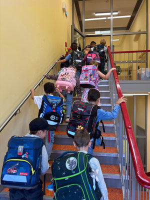 Danach ging es für die neuen Schulkinder endlich los: Gemeinsam mit ihren Klassenlehrerinnen zogen sie in ihre Klassenzimmer zur ersten Unterrichtsstunde.